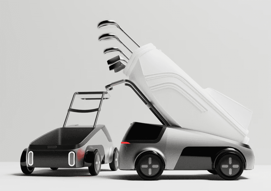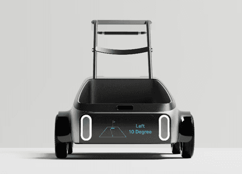 The golf market is expanding, the development of golf caddy robots incorporating autonomous driving and IoT technology is underway. However, since the development is in its early stages, improvements for user convenience are necessary. The developed golf cart here provides users with golf round information such as maps, distance, wind speed, and direction. It also features ample storage space.
