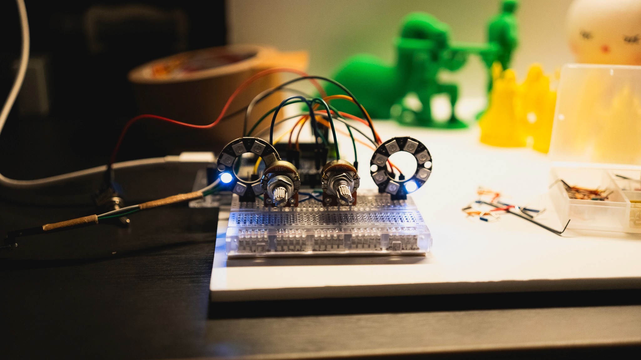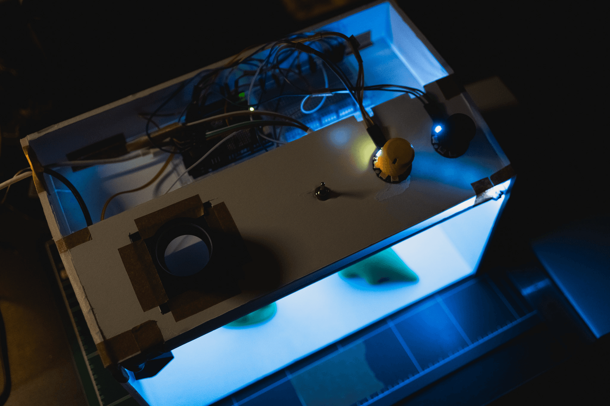 Built a control panel with knobs, a switch, and LEDs using Arduino to adjust environmental filters