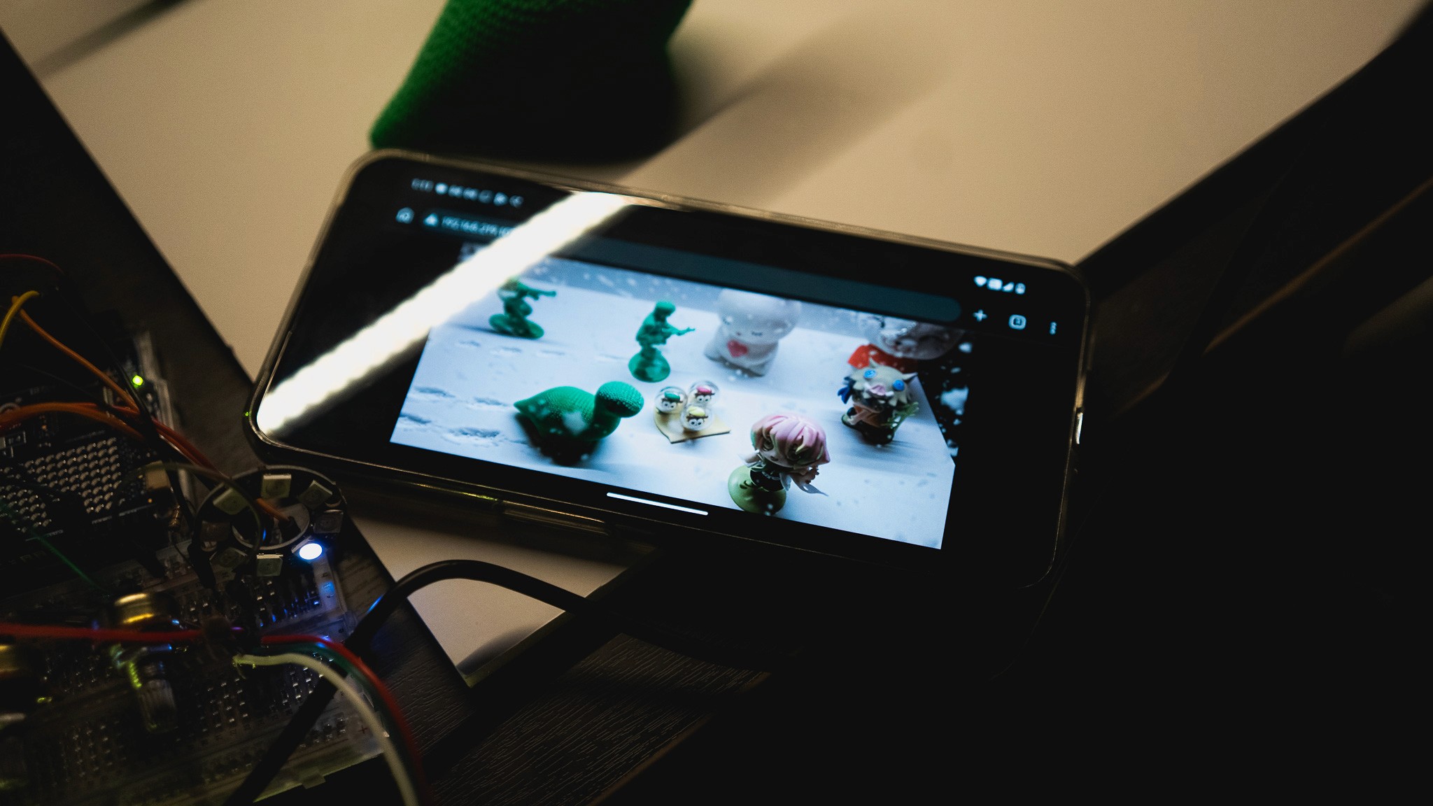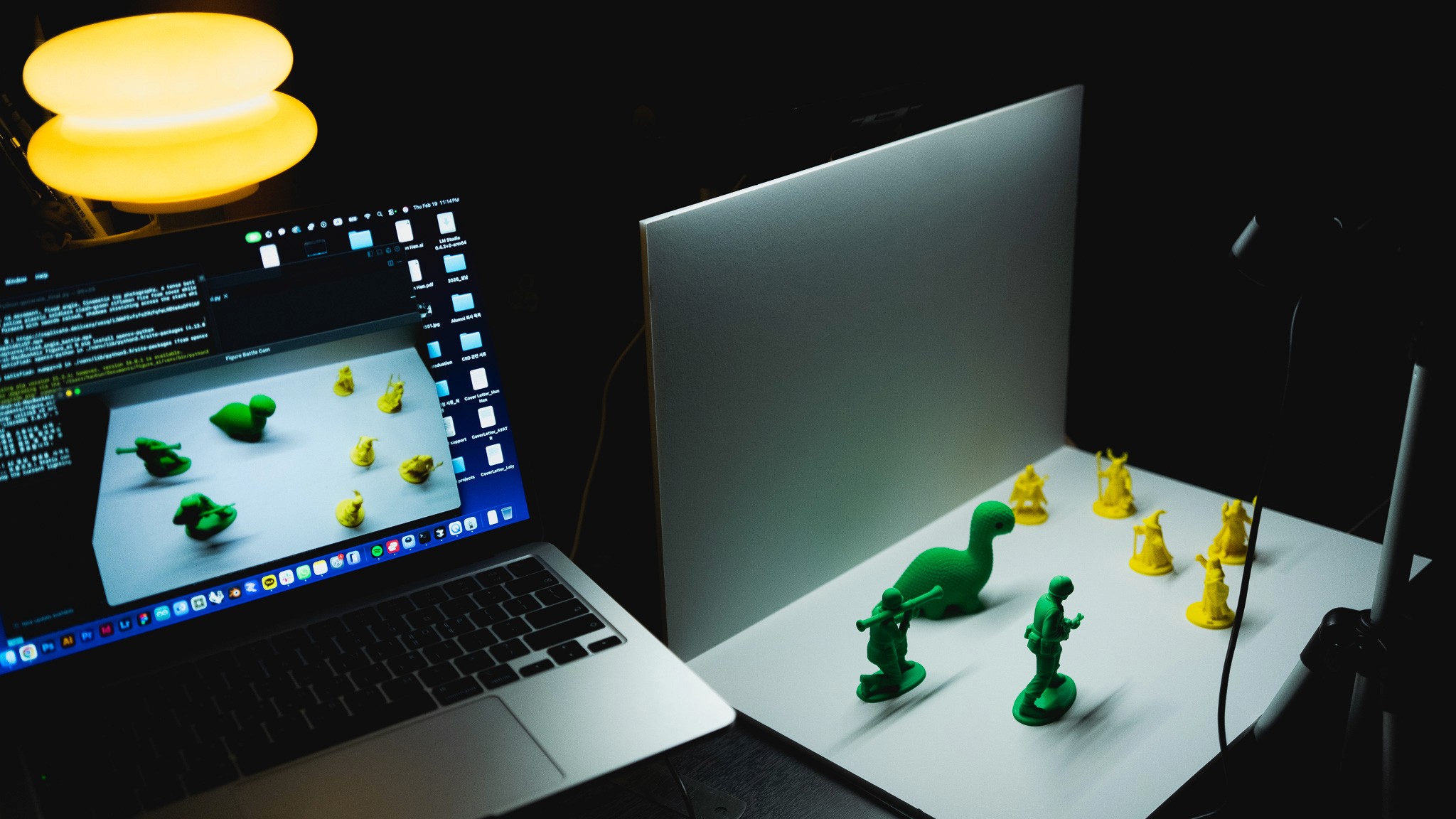 I built a set with white foam board and 3D-printed figures, capturing the scene via a webcam on a tripod. Using Replicate API, I created a Python script by Vibe Coding to transform webcam snapshots into videos.