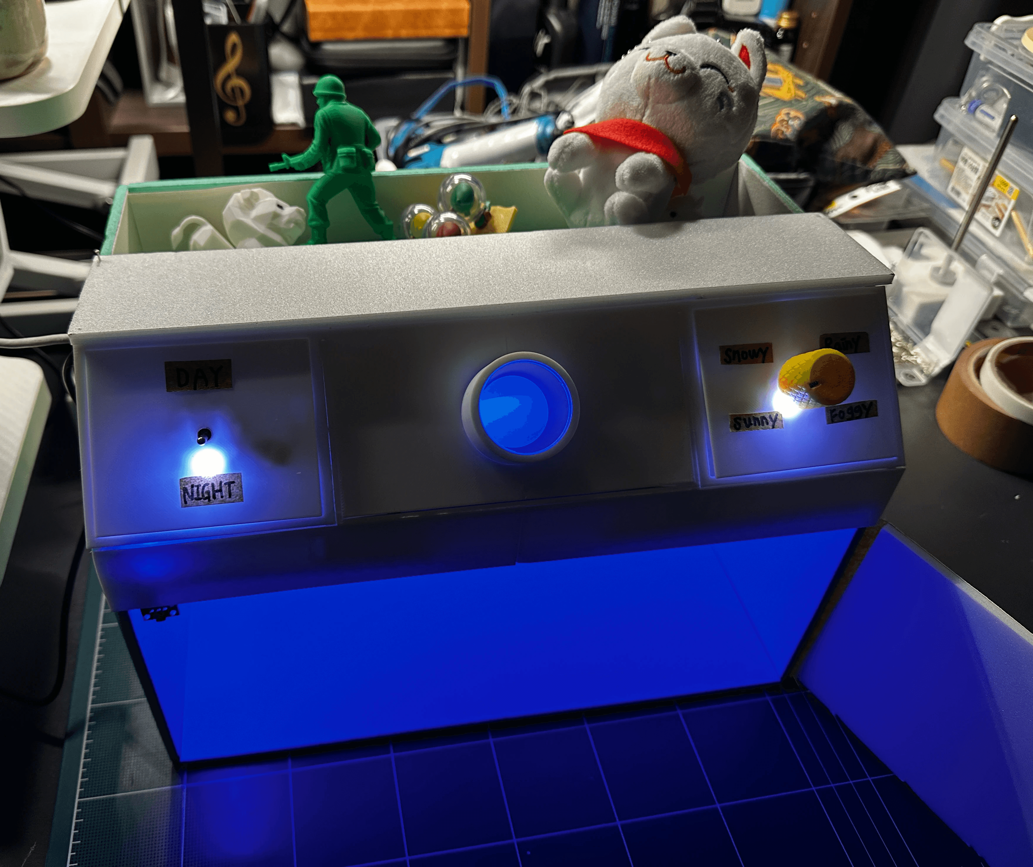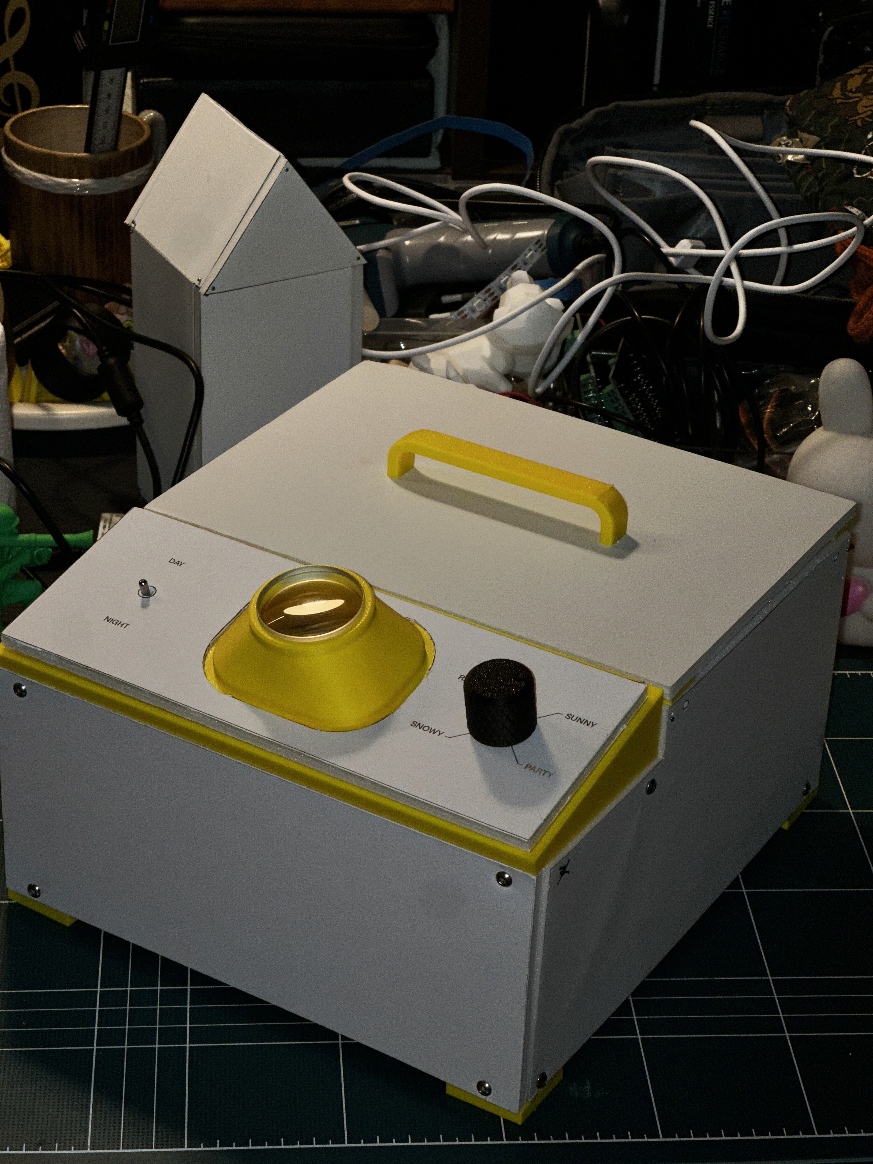 I also added a 'Party Mode' to the existing weather knob, transforming the generated environment into a more vibrant and playful experience.