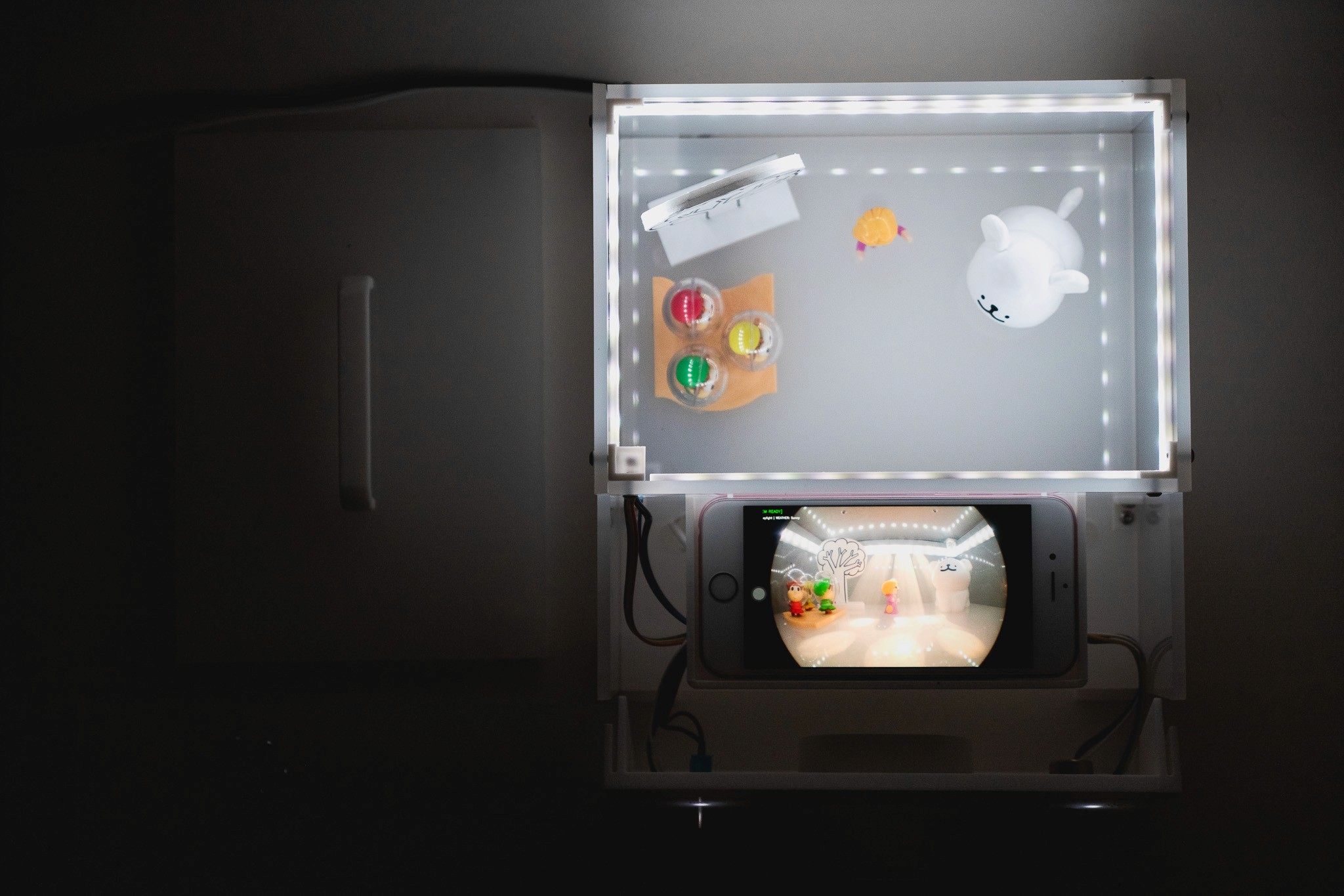 I began developing the prototype by adding a door to the box much like the Toy Story installation to pique children's curiosity about what’s inside. Rather than using unpredictable AI prompts, I designed a system where children can select and control specific options to shape the environment inside the box