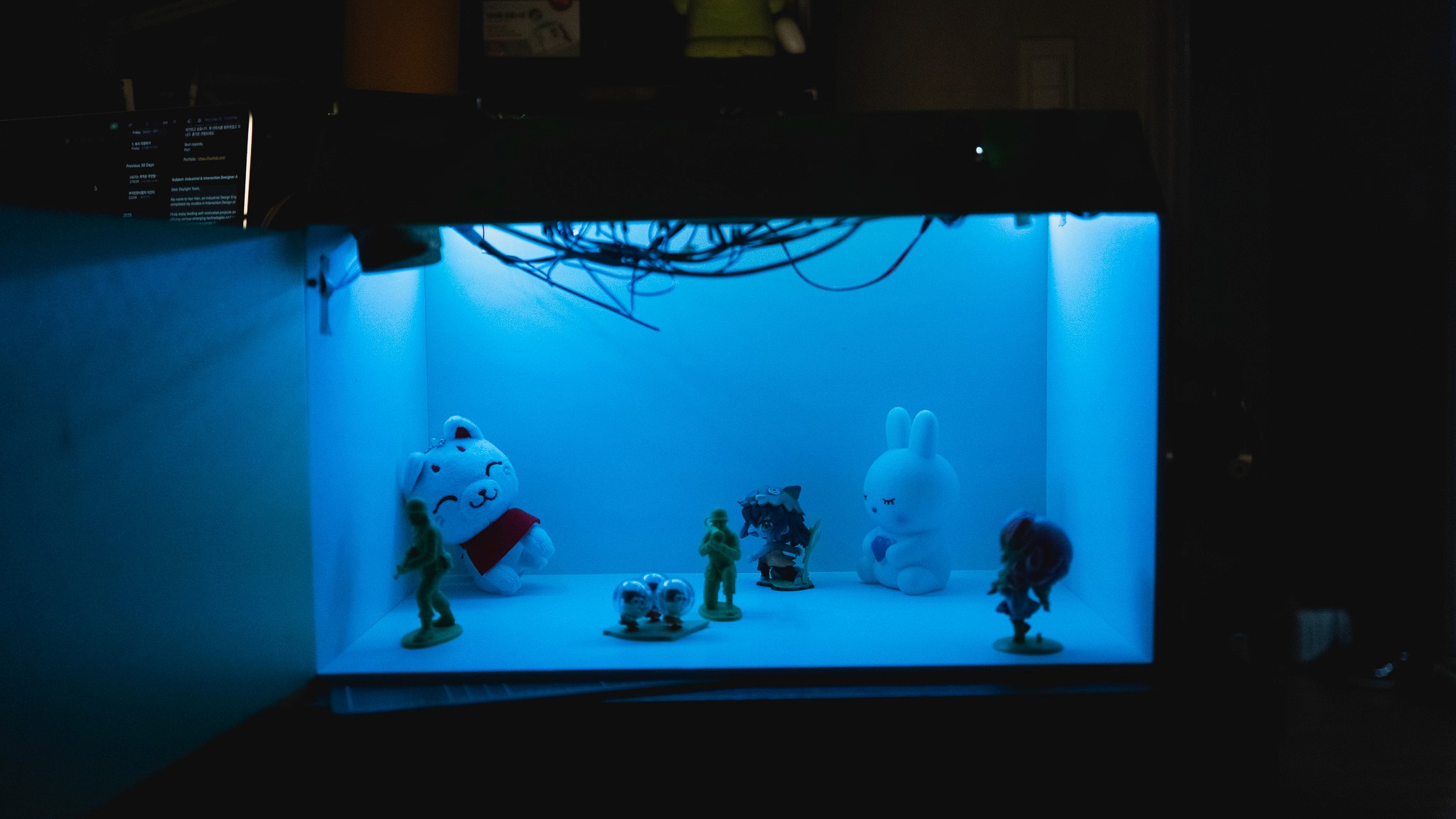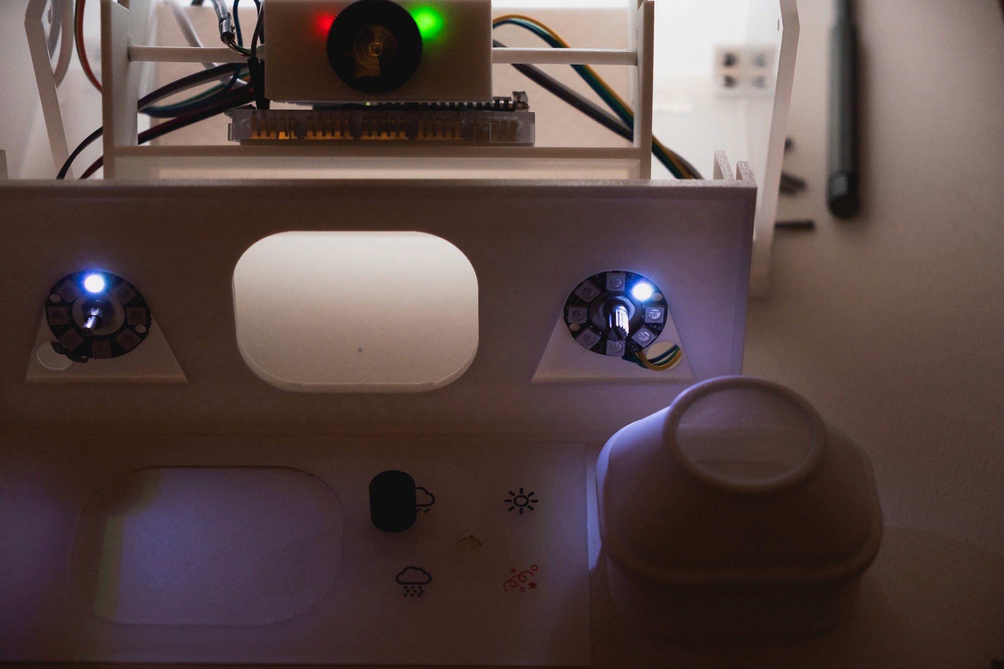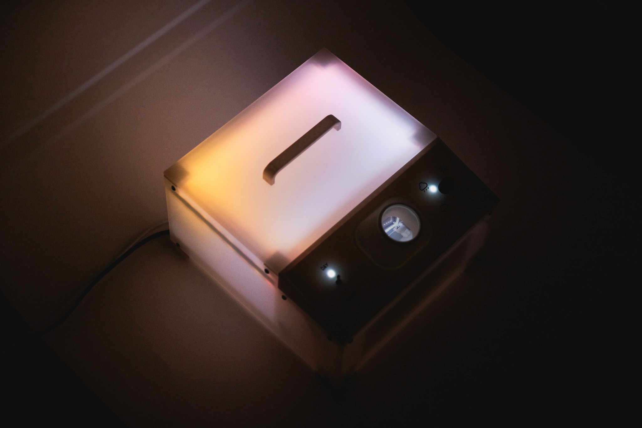 To achieve a more dramatic and natural light diffusion, I purchased translucent acrylic and fabricated a custom case using a laser cutter at a local makerspace. This significantly enhanced the quality of the light, making the glow appear much more organic and immersive