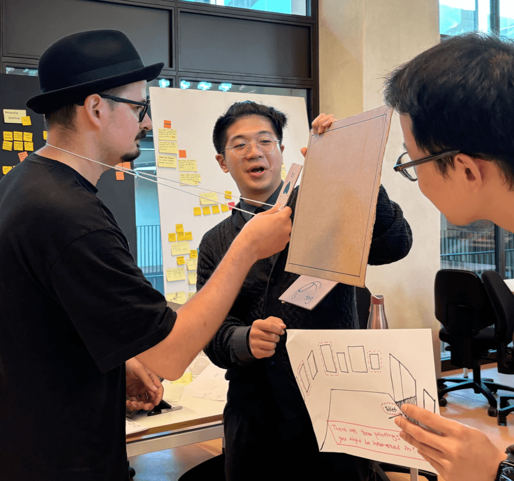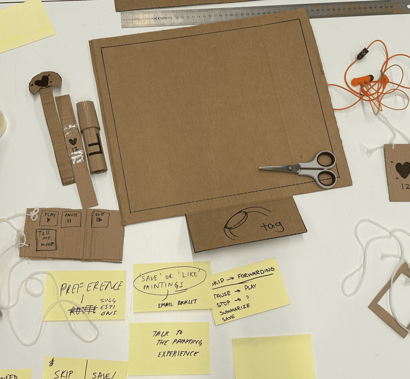 We conducted testing with CIID faculty and art-enthusiastic seniors. Among the various concepts, the camera-shaped audio guide was the most popular. While ideas involving high-tech or novel interfaces caused confusion, the camera-shaped design felt familiar, allowing seniors to use it without any difficulty. This testing process highlighted the crucial importance of form factor