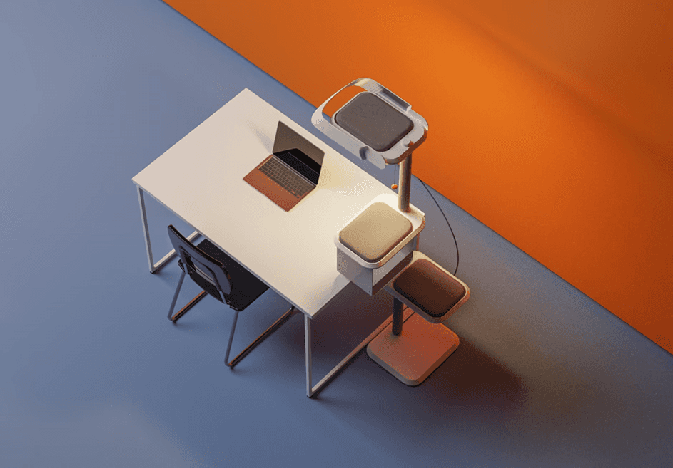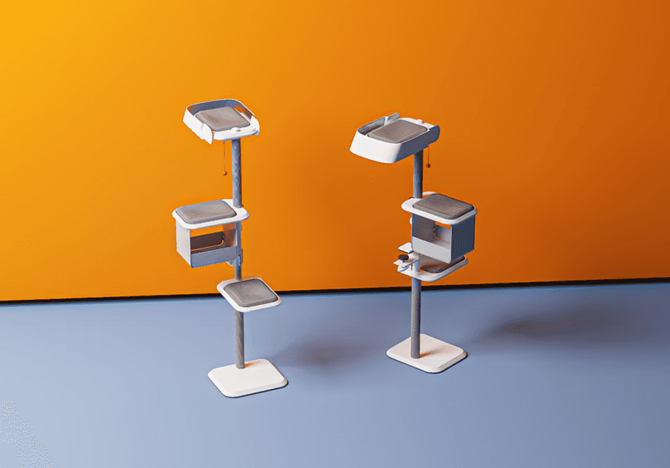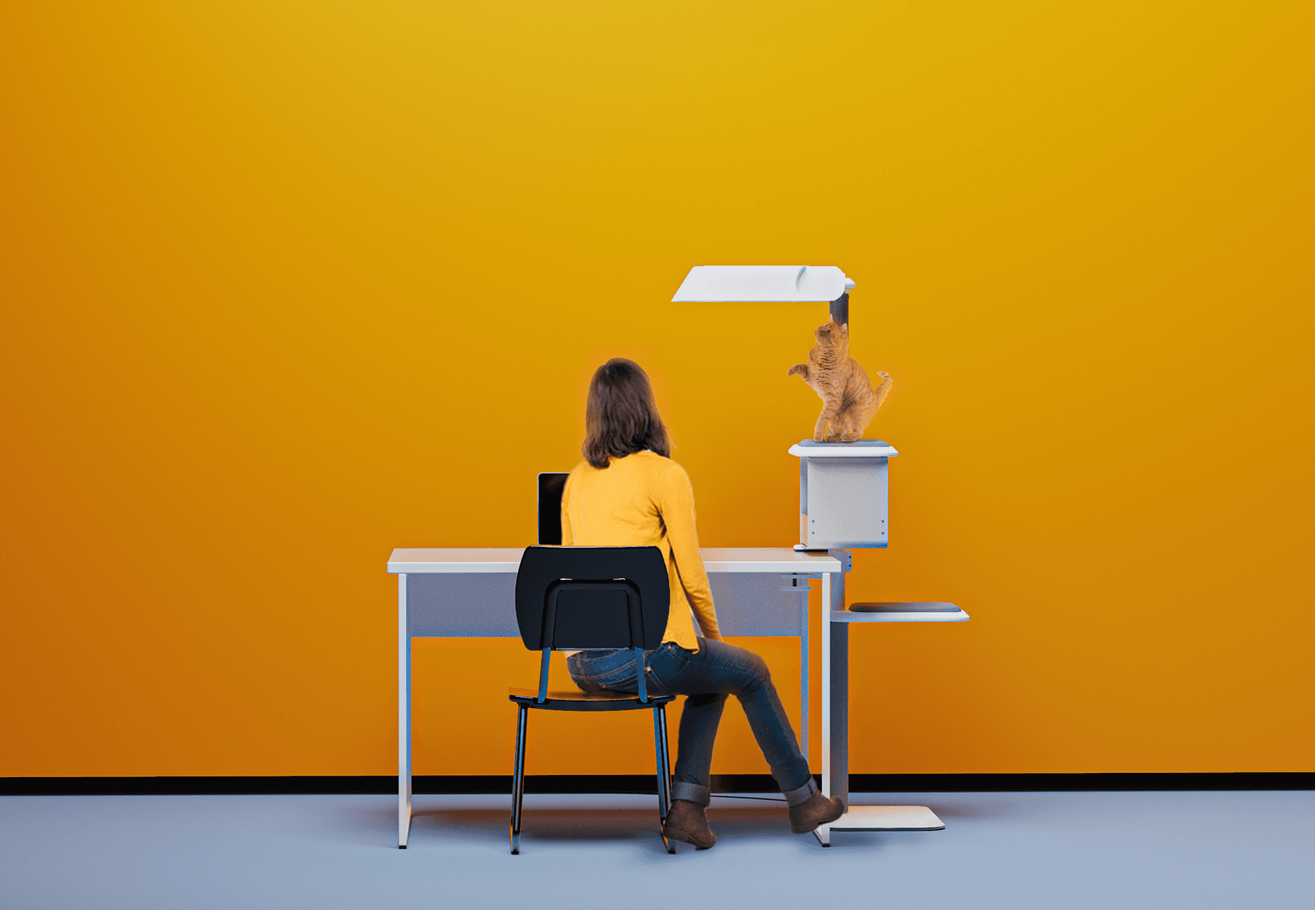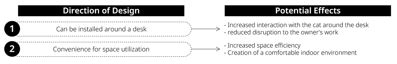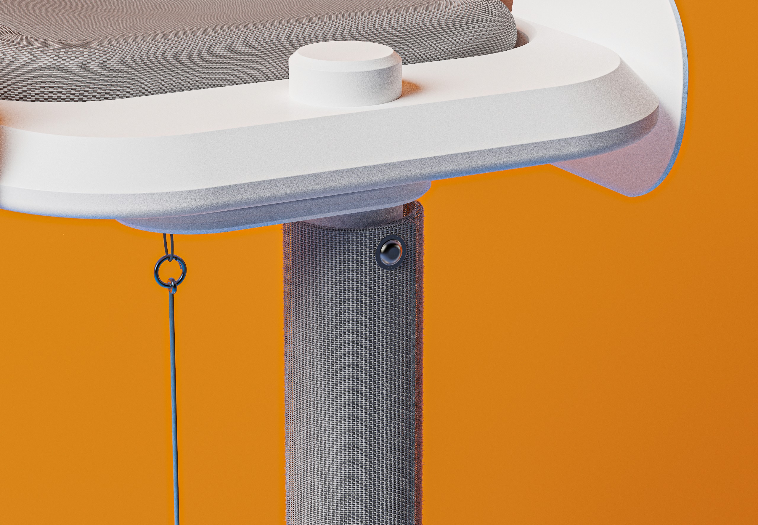 When sitting at my desk to work, there are occasions where my cat climbs onto the desk and disrupts my tasks. In recent times, with the increase in single-person households, there is a growing trend of people raising cats to alleviate loneliness. Drawing inspiration from this situation, I designed a cat tower that allows owners and their cats to share the same desk space, enabling them to work or study together.