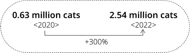 The number of single-person households and the population of those raising pet cats are on the rise. Considering the characteristics of them raising pet cats, who mostly live in limited spaces, there is a need for cat furniture that offers advantages in terms of space efficiency.