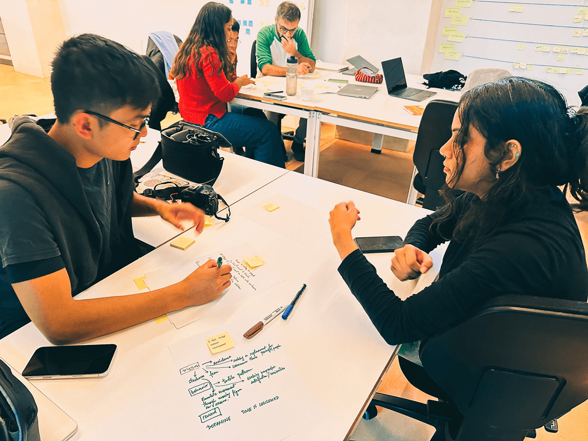 The goal of the project in class was to identify our habits and design a physical product with friction that could either encourage or hinder those habits. Among the 9 habits we shared, we chose the habit of "always feeling bored without a smartphone" as the theme for our project and derived its 'Trigger', 'Behaviour' and 'Reward'