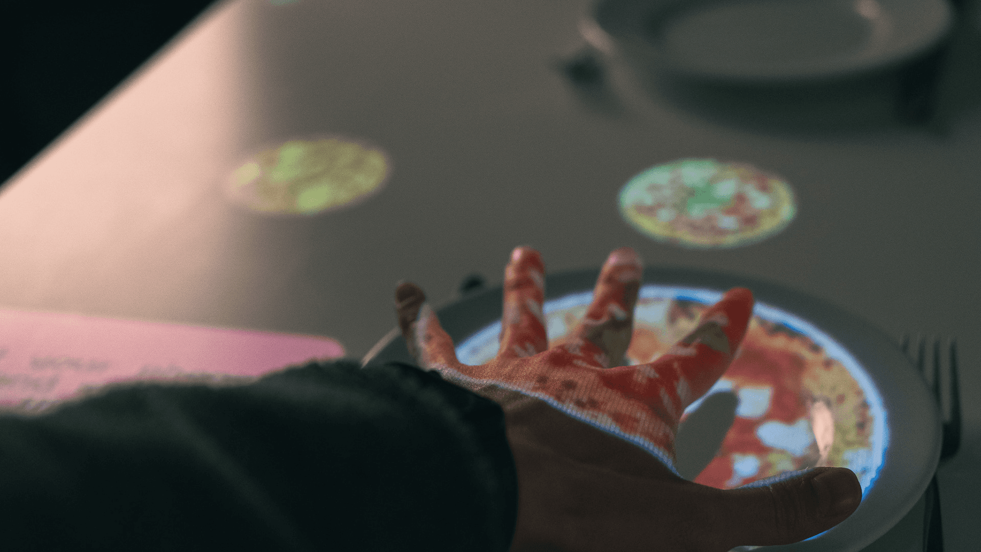 If you’re frustrated by your partner’s habit of constantly checking their phone during dates, पल offers a unique solution. Food is ordered through hand gestures, and phones are set aside. If a phone is detected on the table thereafter, warning messages appear, and the table flashes blue, drawing attention to the disruption. The table also recognises objects and gifts exchanged by the couple, suggesting conversation starters based on these items. The most enchanting feature is activated when the couple holds hands: the table turns pink and plays “Careless Whisper.”