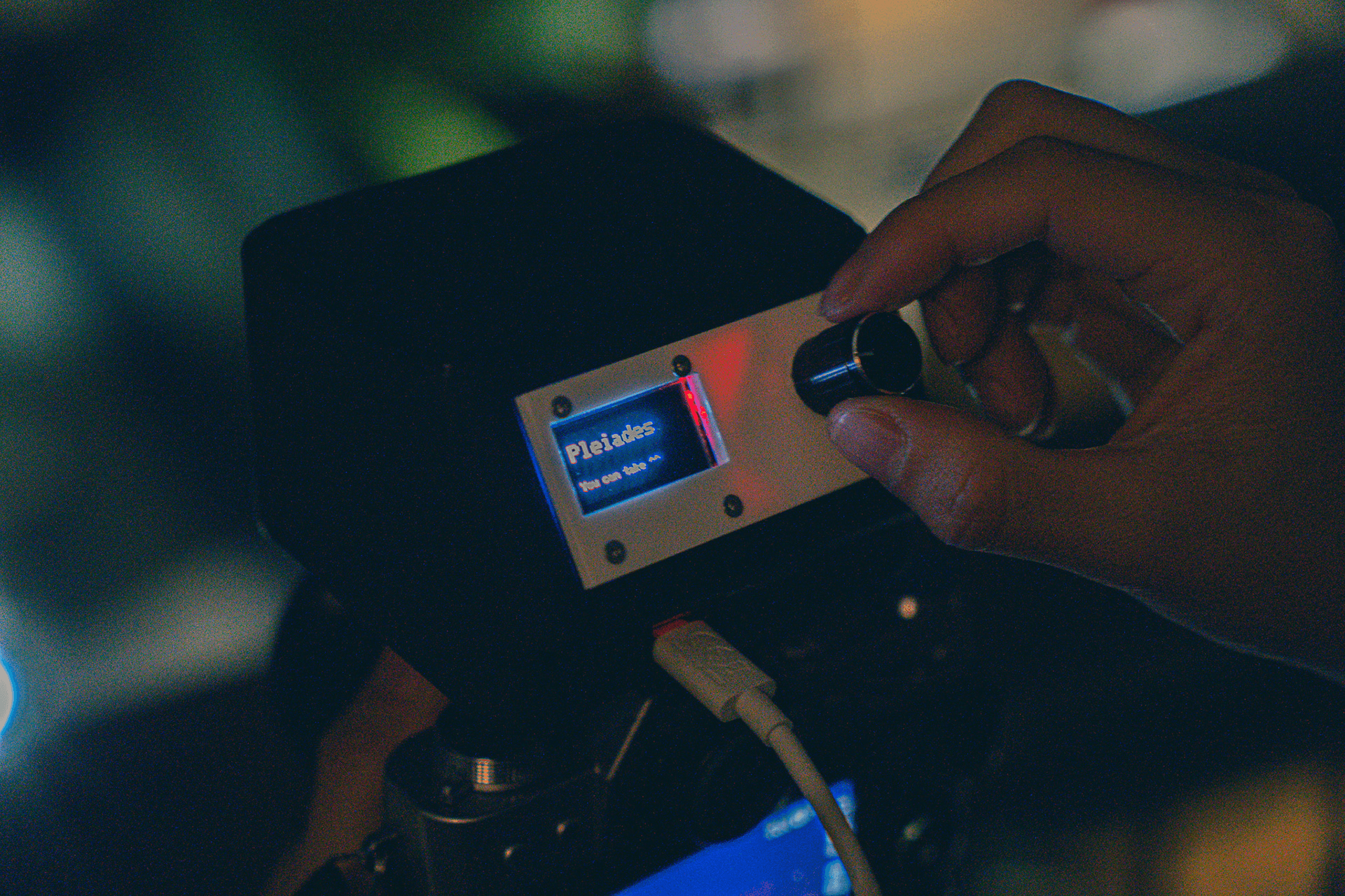 Polaris is an device to assist astrophotography by guiding users to the position of the star they wish to capture. When the GPS module detects the person's current latitude, longitude and time, Polaris calculates the azimuth (the compass-based angle) and altitude (the vertical angle relative to the horizon) of stars visible from that location. Using this information, users can check which stars are currently visible in the sky, select a target star, and begin preparing for the shot. With the help of an OLED display and a gyroscope sensor, Polaris provides a visual guide to level the camera horizontally. Then, using a Hall sensor, users can adjust the azimuth (similar to using a compass) to align with the selected star’s direction. Finally, based on the pitch value from the gyroscope, users adjust the altitude angle. Once the camera is correctly aligned toward the the star with Polaris, they are ready to take the shot!