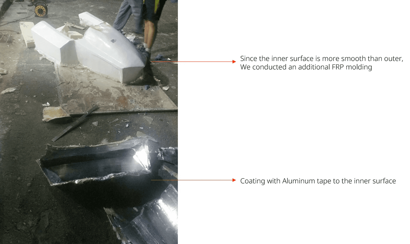 Plastic molding utilizing FRP(Fiberglass Reinforced Plastic)