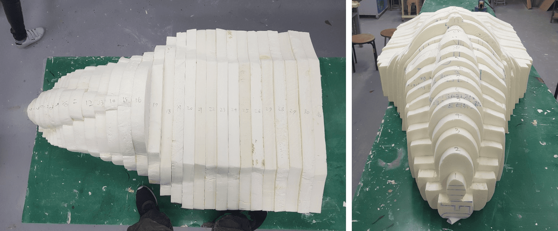 Stacking the extruded foam
